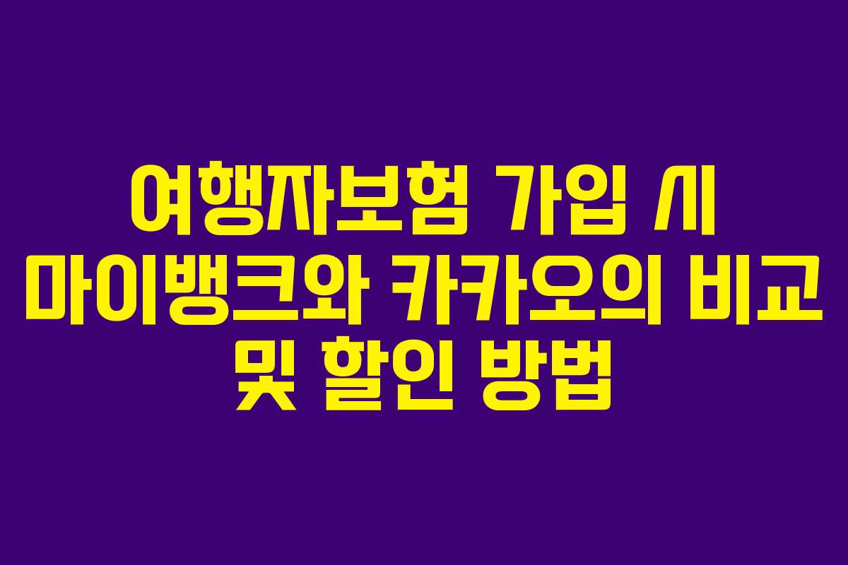 여행 중 예기치 못한 사고는 언제든 발생할 수 있습니다. 이러한 위험 요소를 줄이기 위해 많은 사람들이 여행자 보험에 가입하고 있습니다. 이번 글에서는 마이뱅크를 통한 여행자 보험 가입 방법과 카카오 여행자 보험의 혜택을 비교해보겠습니다. 또한, 여행자 보험을 할인받는 방법에 대해서도 자세히 설명드리겠습니다.