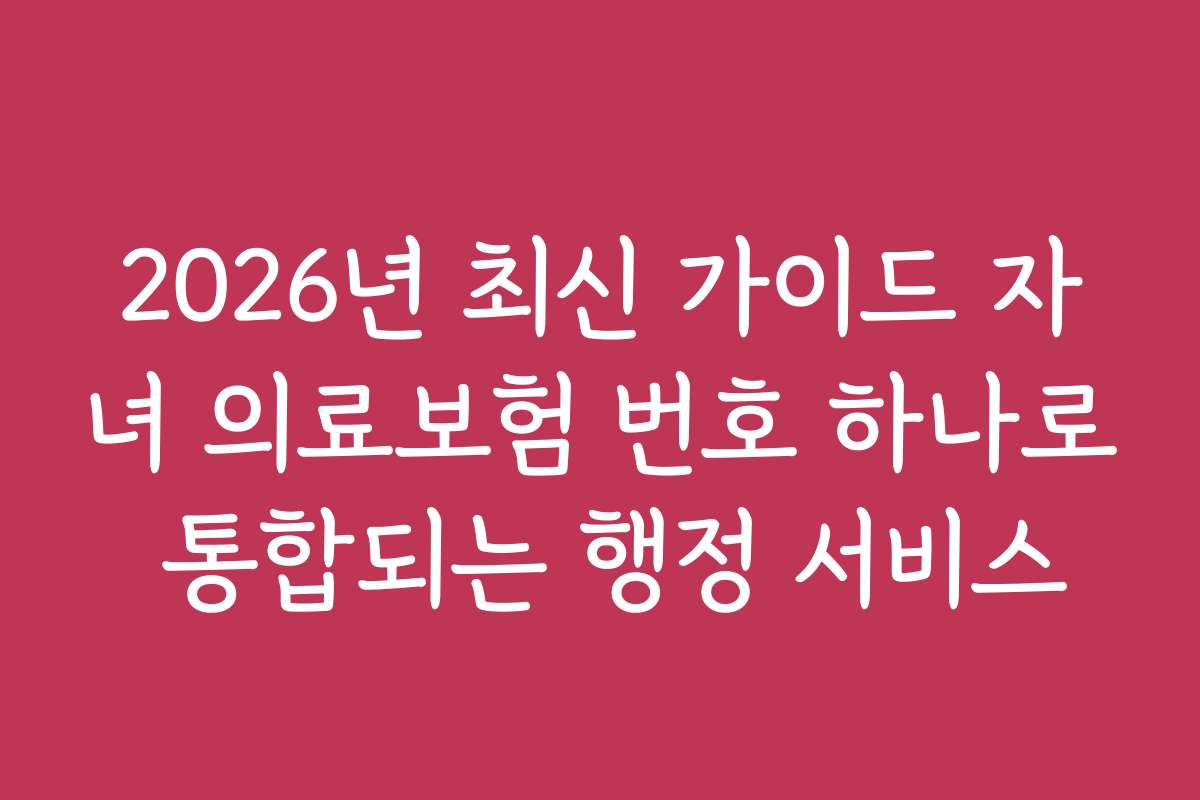 2026년 최신 가이드 자녀 의료보험 번호 하나로 통합되는 행정 서비스에 대한 모든 내용을 담았습니다. 이 글을 통해 2026년 최신 정보와 함께 필요한 절차를 이해하고, 놓치면 후회할 팁까지 챙겨보세요. 자녀의 의료보험 관리, 이제는 간편하게 해결할 수 있습니다.