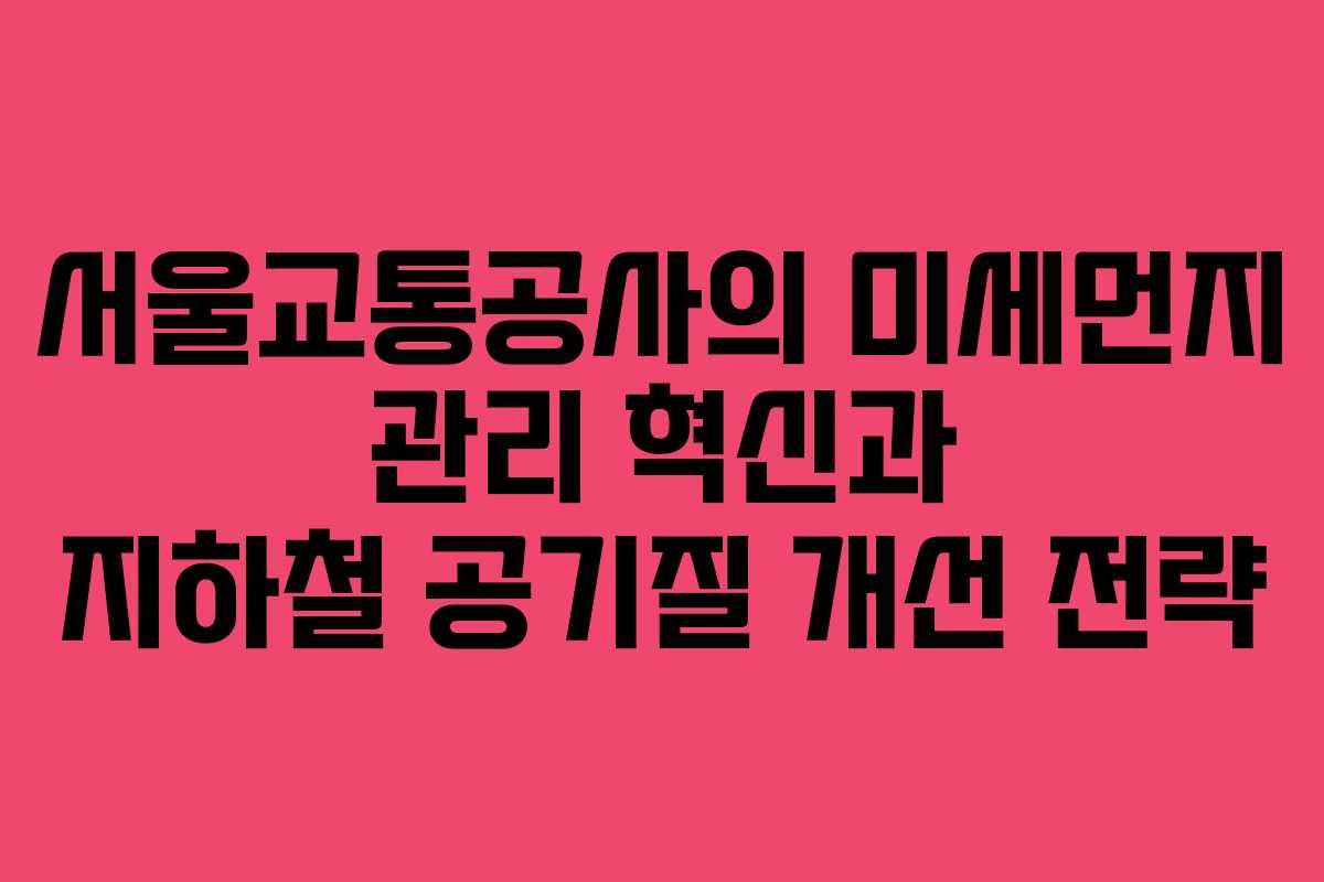 🤔 서울교통공사의 미세먼지 관리에 대한 궁금증