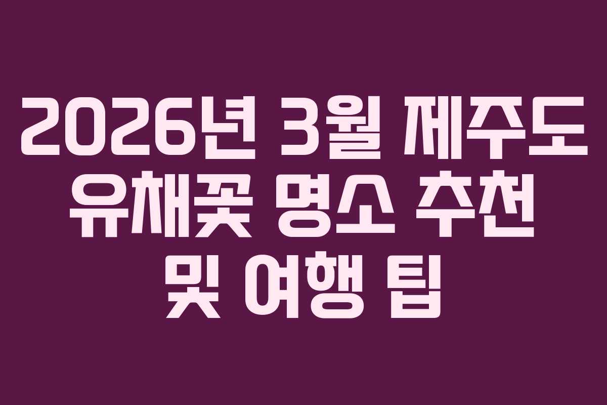 2026년 3월 제주도 유채꽃 명소 추천 및 여행 팁