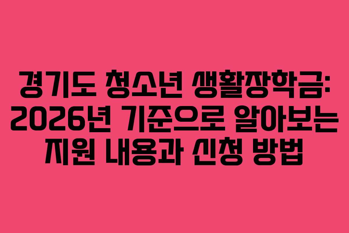 경기도 청소년 생활장학금: 2026년 기준으로 알아보는 지원 내용과 신청 방법
