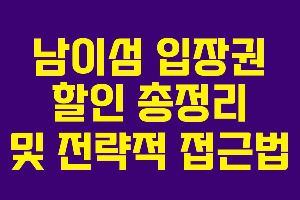 남이섬의 입장권 할인 방법은 크게 세 가지로 나눌 수 있습니다. 각 할인 방법의 세부사항을 알아보겠습니다.