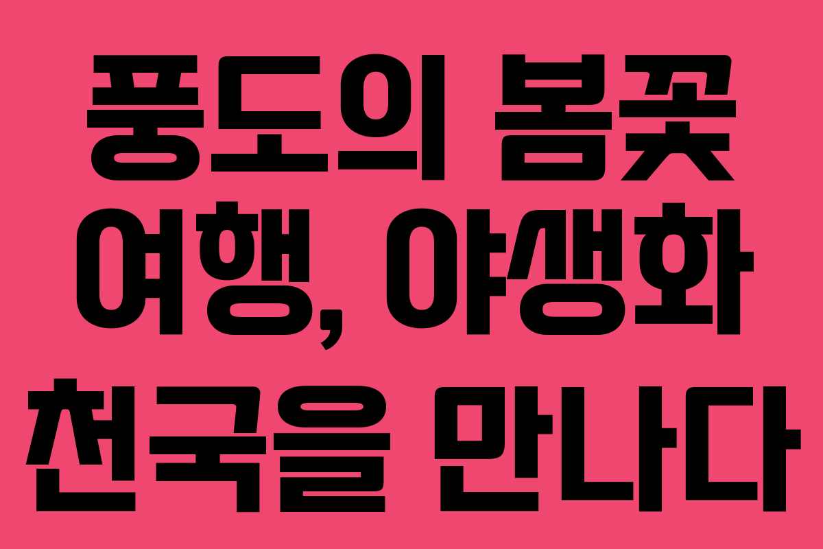 봄이 성큼 다가오는 요즘, 따뜻한 햇살과 함께 마음이 설레는 시점입니다. 특히 수도권에서 쉽게 접근할 수 있는 풍도는 이른 봄꽃을 만끽할 수 있는 최적의 장소로 주목받고 있습니다. 이곳에서는 다양한 야생화를 감상하고, 고요한 섬의 매력을 즐길 수 있습니다. 풍도에서의 특별한 봄꽃 여행을 소개하고자 합니다.