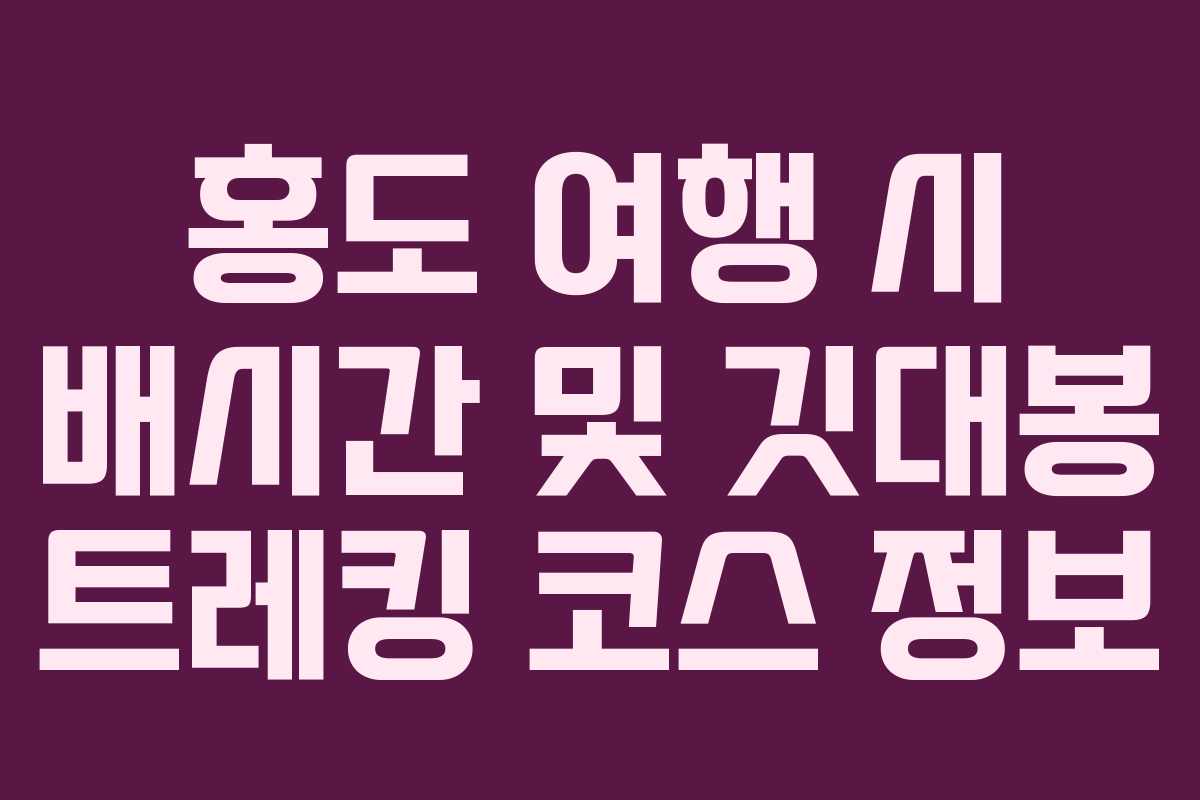 홍도는 매력적인 여행지로, 하루 일정으로도 충분히 즐길 수 있는 장소입니다. 목포항에서 출발하는 쾌속선을 이용하면 빠르게 홍도에 도착할 수 있으며, 다양한 액티비티와 식사 옵션이 준비되어 있어 알찬 하루를 보낼 수 있습니다. 이번 글에서는 홍도의 배시간, 깃대봉 트레킹 코스, 맛집 정보를 제공하여 여러분의 여행 준비에 도움이 되고자 합니다.