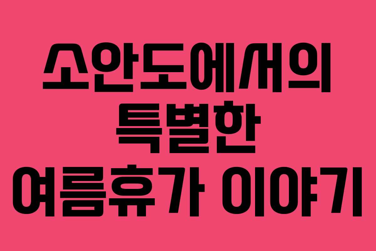 소안도는 매년 많은 사람들에게 매력을 느끼게 하는 섬입니다. 아름다운 자연과 여유로운 시간은 그곳을 찾는 모든 이에게 잊지 못할 경험을 선사합니다. 소안도에서의 특별한 여름휴가는 이렇게 시작되었습니다.