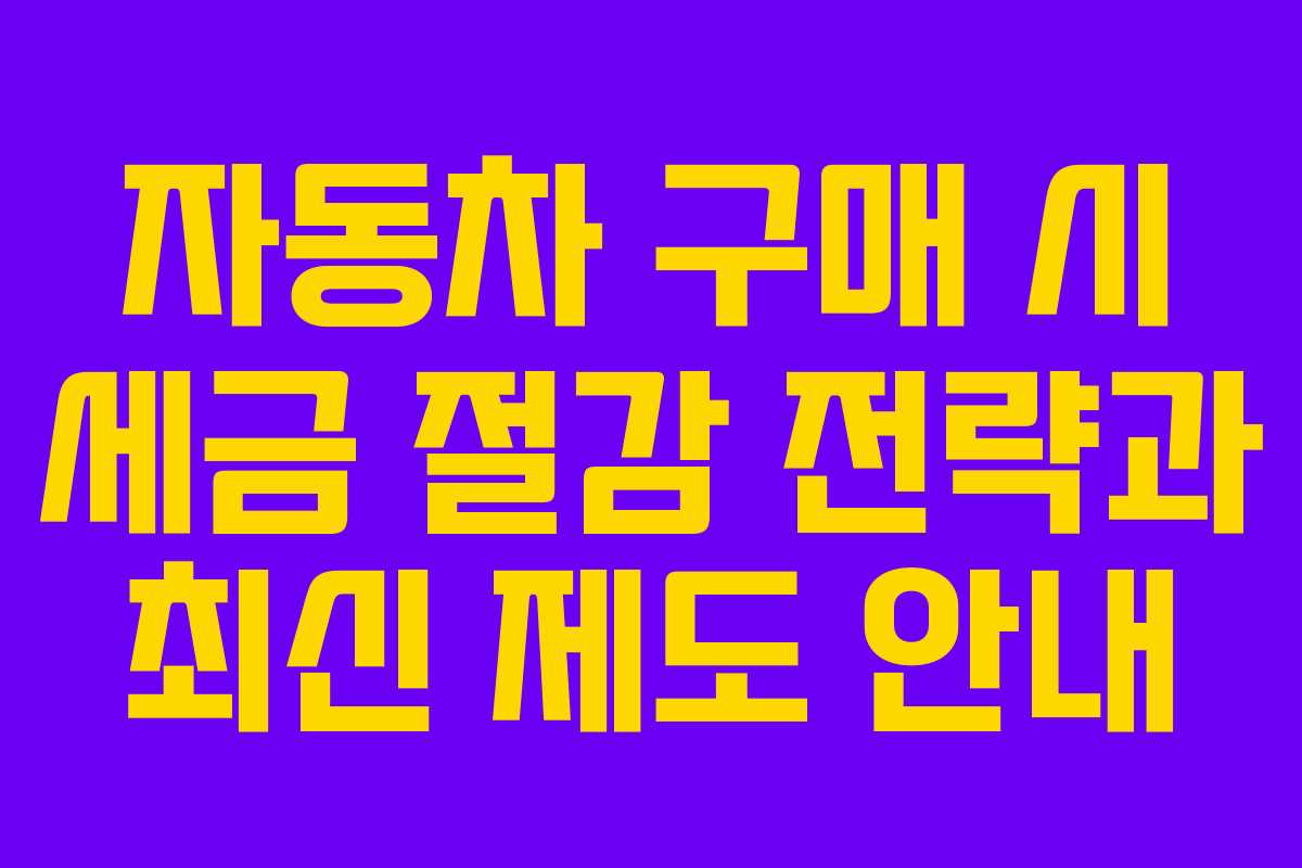 자동차 구매 시 세금 절감 전략과 최신 제도 안내
