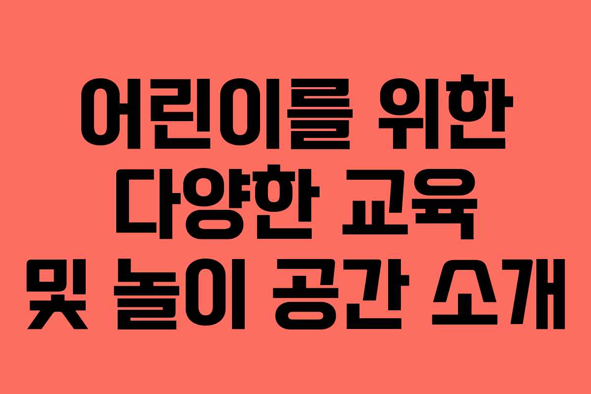 어린이의 성장과 발달에 맞춘 다양한 교육 및 놀이 공간이 마련되어 있습니다. 이들 공간은 각기 다른 특성과 프로그램을 통해 아이들이 즐겁고 유익한 시간을 보낼 수 있도록 돕고 있습니다. 특히, 2026년 기준으로 각 기관의 최신 정보와 프로그램을 반영하여 어린이와 부모에게 필요한 정보들을 제공하겠습니다.