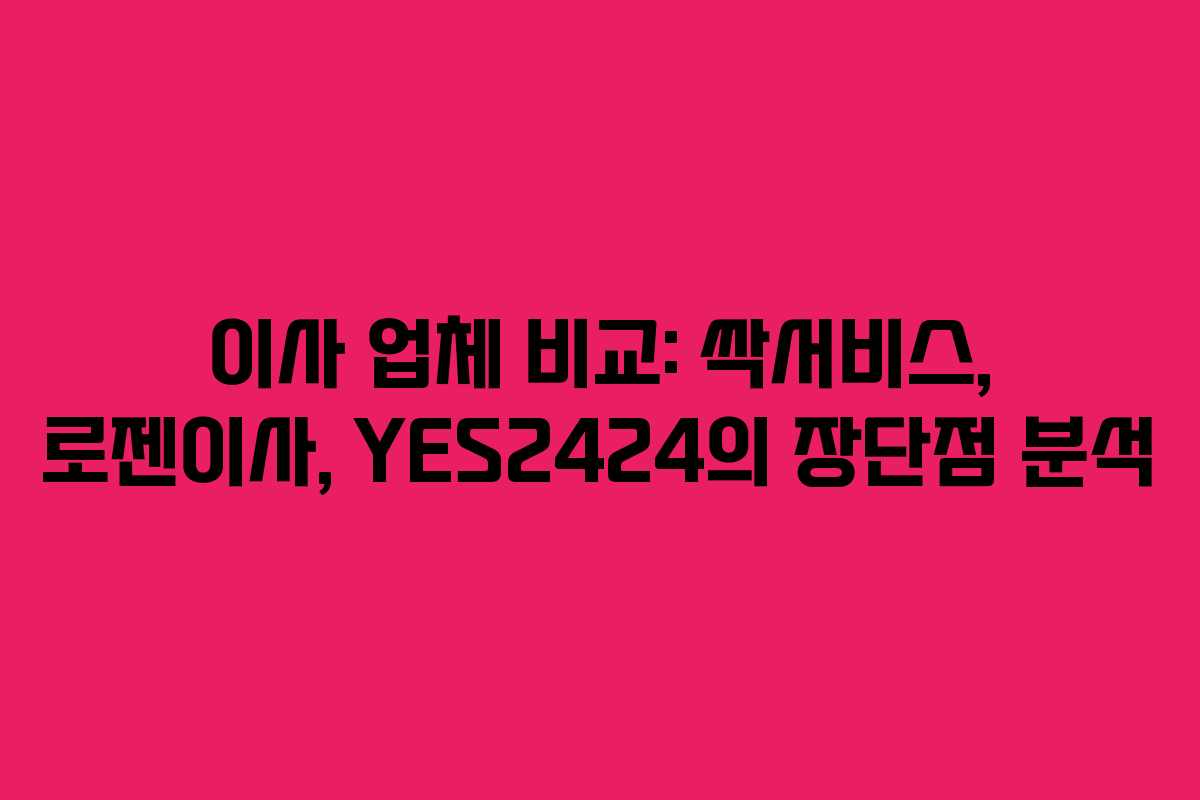 이사라는 큰 결정을 앞두고 적절한 업체 선택이 중요하다. 이사 당일에 발생할 수 있는 여러 가지 상황을 고려했을 때, 믿을 수 있는 이사업체를 선택하는 것은 매우 중요한 일이다. 특히 결혼 후 첫 이사라면 더욱 신중을 기해야 한다. 이번에는 지역 맘카페와 포털 검색을 통해 선정한 세 개의 이사업체, 즉 싹서비스, 로젠이사, 그리고 YES2424에 대한 견적과 경험을 비교해 보았다.
