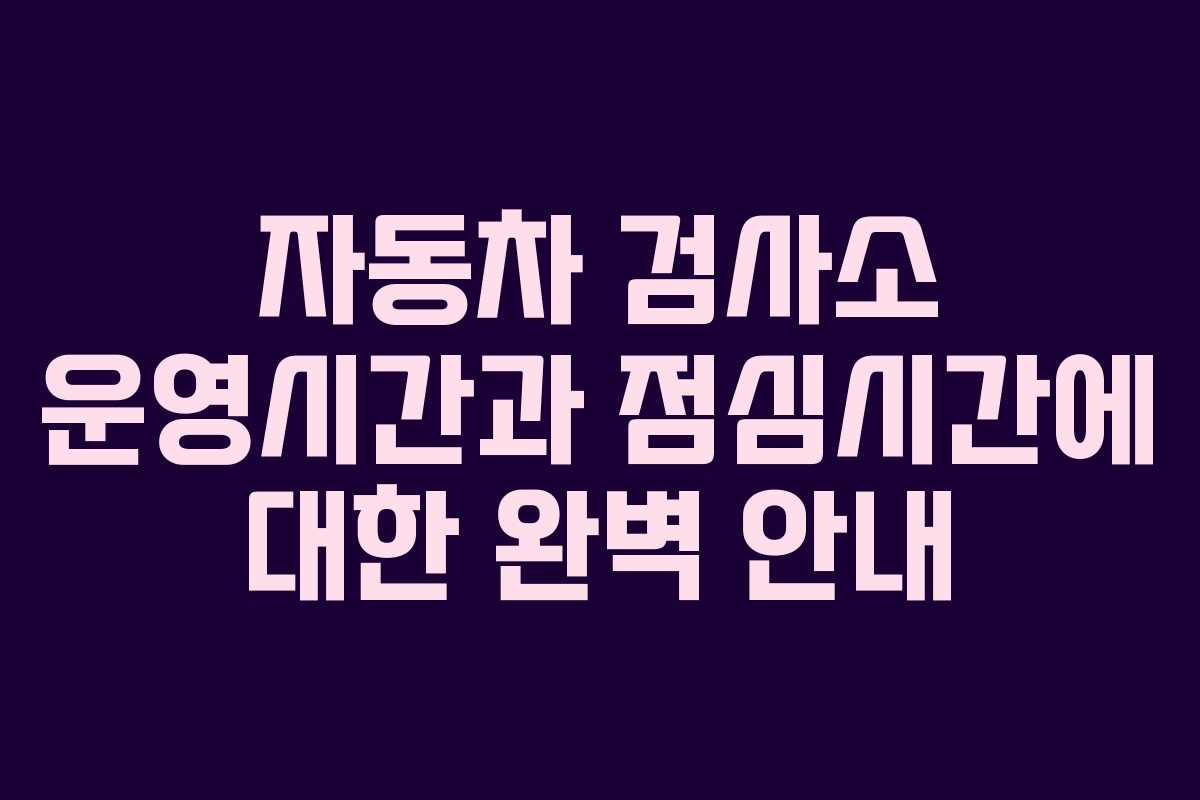 자동차를 소유하는 모든 이에게 있어서 정기적인 검사는 필수입니다. 이 과정은 차량의 안전성을 확인하고, 도로에서의 사고를 예방할 수 있는 중요한 단계를 제공합니다. 하지만 자동차 검사소를 방문하기 전에 그 운영시간과 점심시간을 미리 아는 것이 매우 중요합니다. 이번 글에서는 2026년 기준으로 자동차 검사소의 운영시간과 점심시간, 그리고 방문 시 유의사항에 대해 자세히 안내하겠습니다.