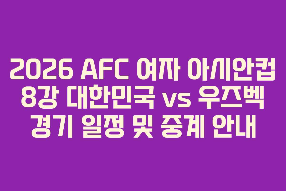 2026 AFC 여자 아시안컵 8강 대한민국 vs 우즈벡 경기 일정 및 중계 안내