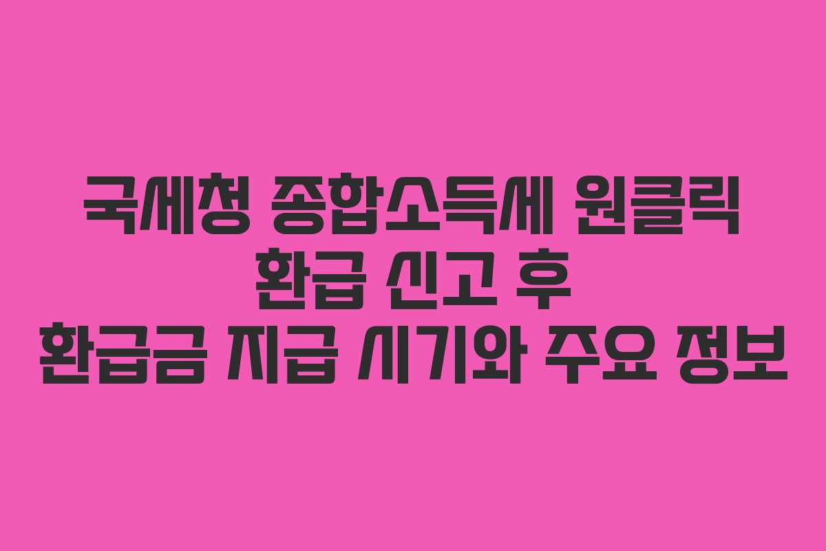 국세청 종합소득세 원클릭 환급 신고 후 환급금 지급 시기와 주요 정보