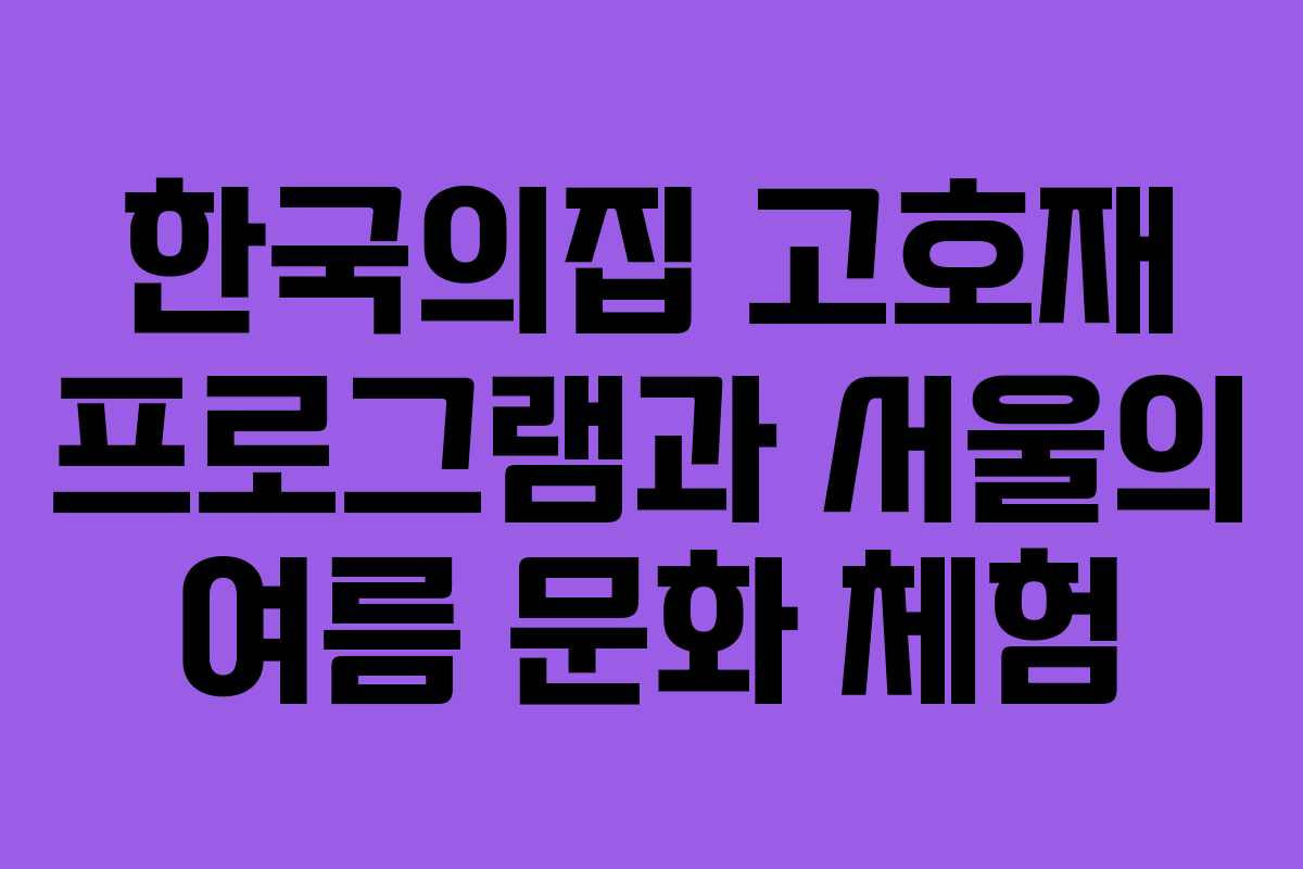 2026년에도 고호재 프로그램은 서울의 여름 문화 체험의 핵심이 될 것입니다. 전통문화 체험은 단순한 관광을 넘어, 깊이 있는 문화 이해를 돕는 역할을 합니다. 이러한 프로그램에 참여함으로써, 방문객들은 한국의 역사와 문화를 더욱 가까이에서 느낄 수 있습니다.