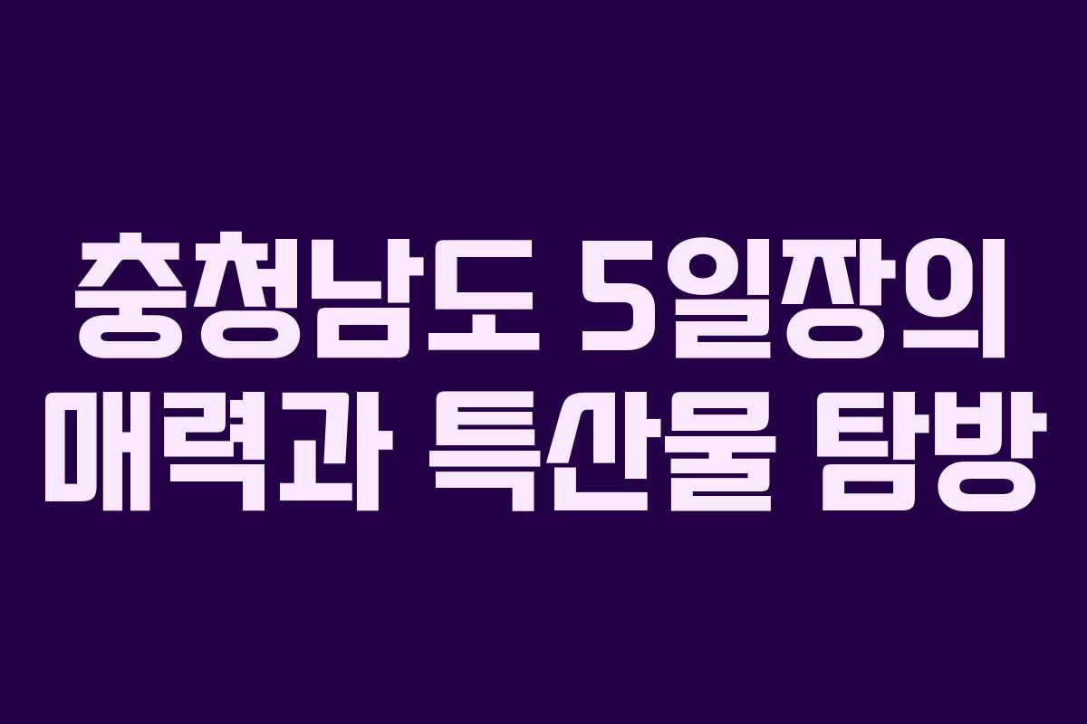 충청남도의 5일장은 지역 주민들과 관광객들이 함께 즐길 수 있는 전통 장터로, 매월 특정 날짜에 열리는 이 장터는 지역의 특산물을 구매할 수 있는 기회를 제공합니다. 이 글에서는 각 시군별 5일장 운영 일정과 그곳에서 구매할 수 있는 특산물에 대해 자세히 살펴보겠습니다.