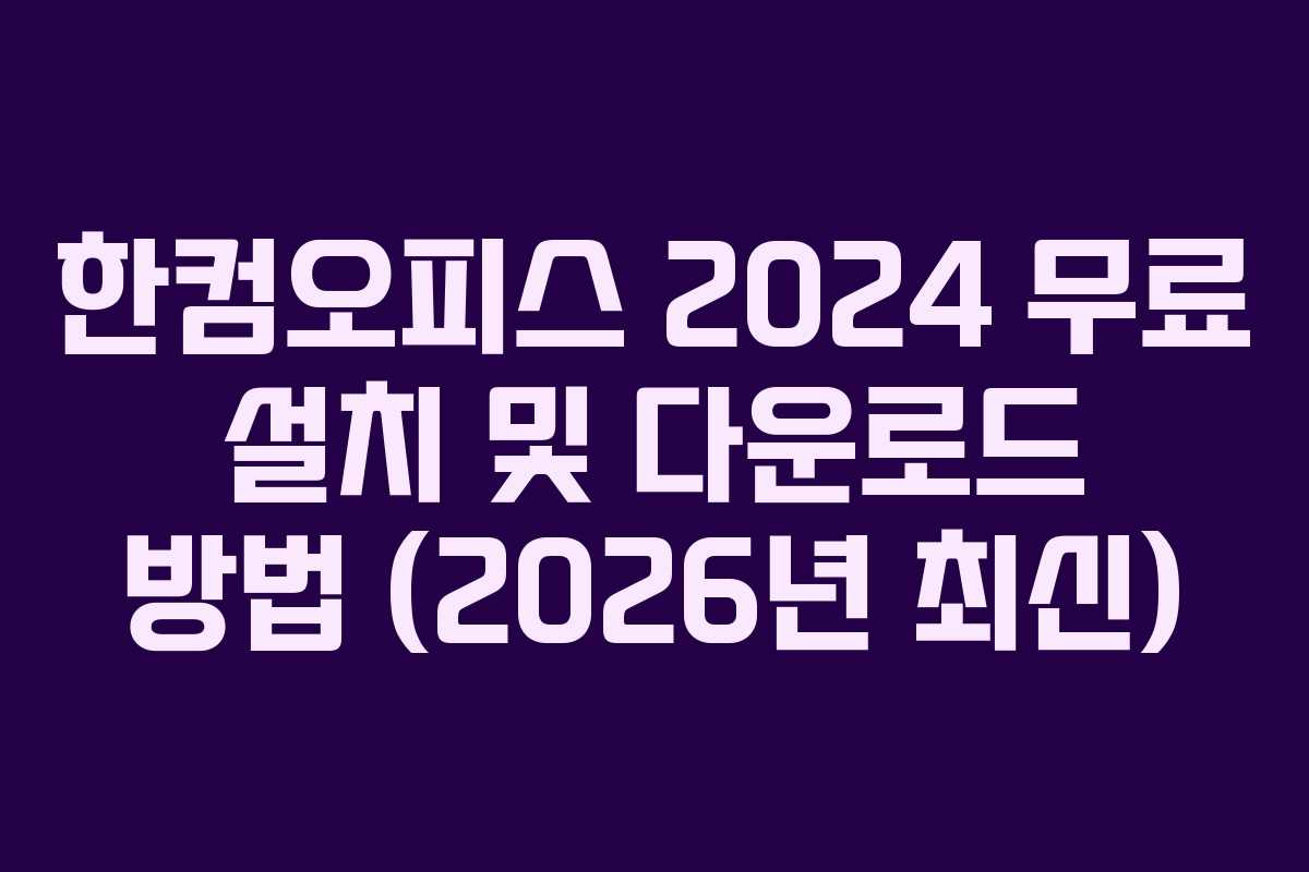 한컴오피스 2024 무료 설치 및 다운로드 방법 (2026년 최신)