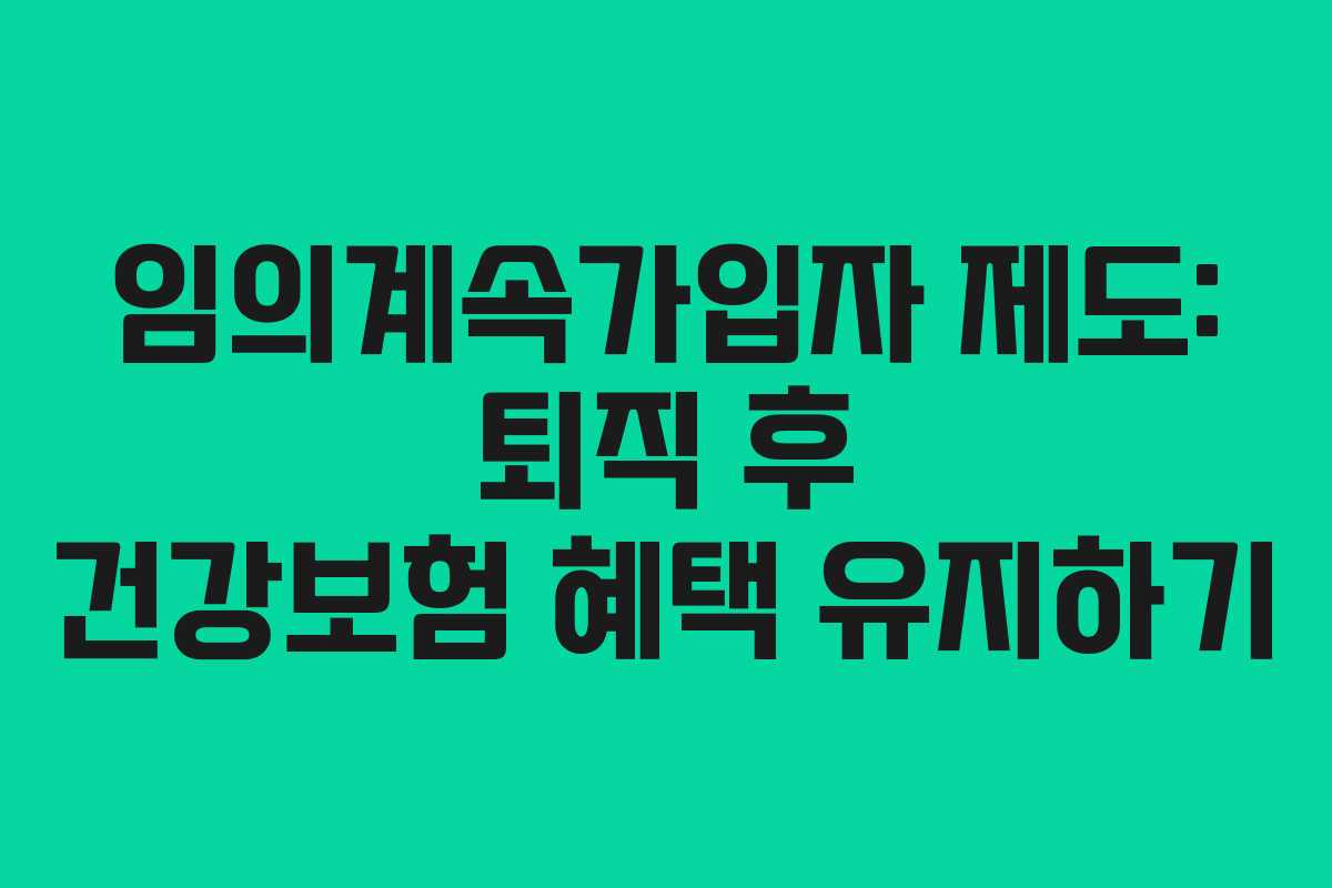 직장을 떠나는 순간, 많은 이들이 건강보험 혜택이 종료된다는 사실에 당황합니다. 하지만 임의계속가입자 제도를 통해 이러한 걱정을 덜 수 있습니다. 이 제도는 직장가입자로서의 건강보험 혜택을 지속적으로 누리고자 하는 퇴직자에게 매우 유용합니다. 이번 글에서는 임의계속가입자의 정의, 조건, 혜택, 가입 절차, 주의사항 등을 상세히 안내하겠습니다.