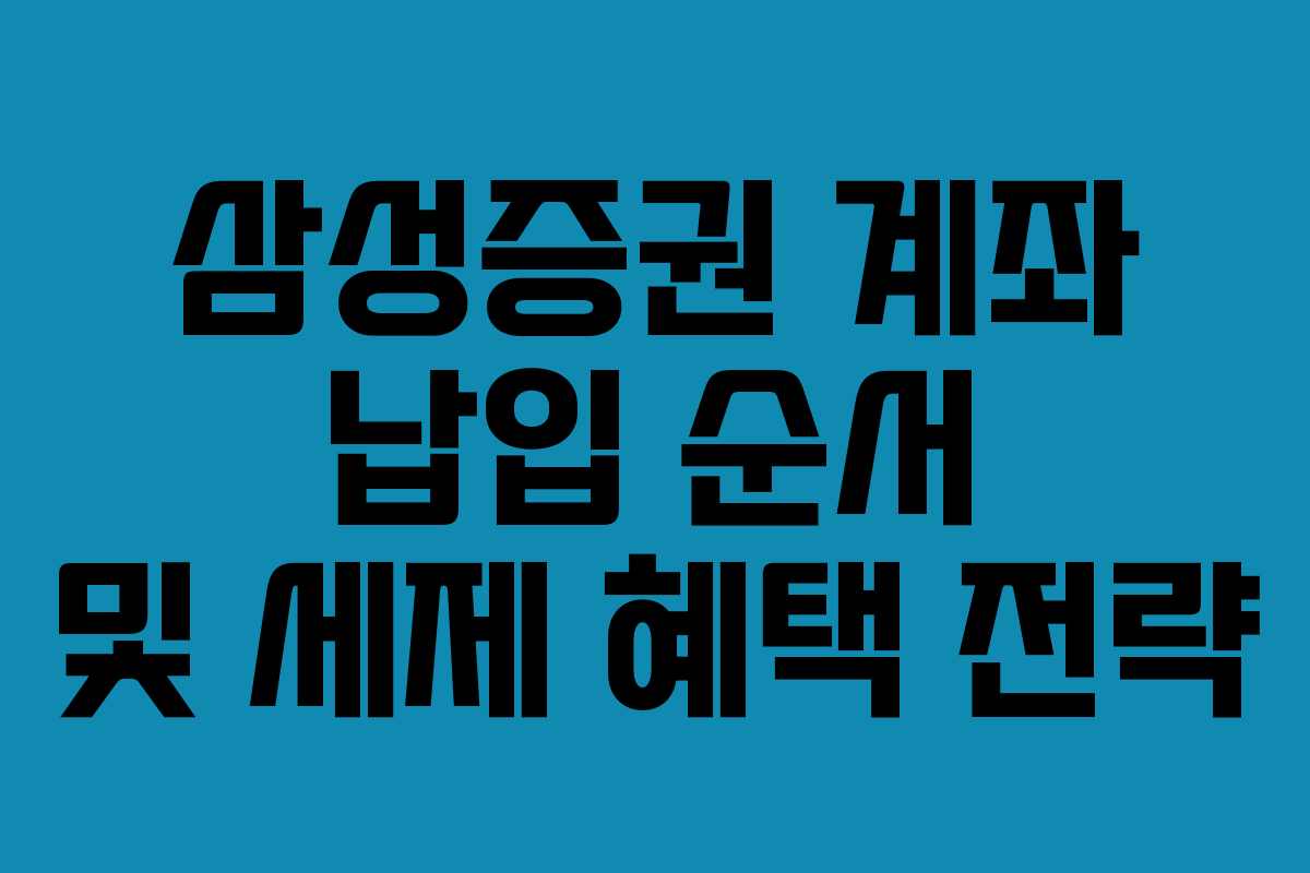 삼성증권 계좌 납입 순서 및 세제 혜택 전략