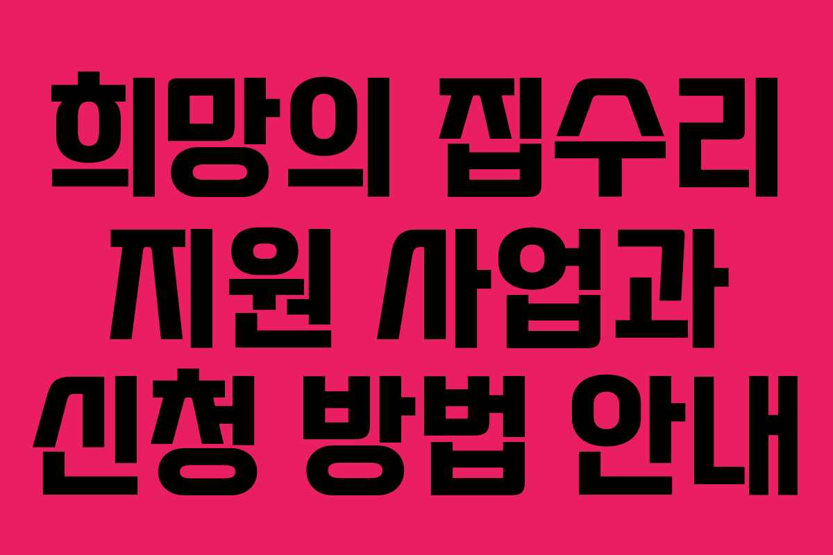 희망의 집수리 사업은 저소득층 가구에게 실질적으로 필요한 주거 환경 개선을 지원하기 위해 마련된 프로그램입니다. 이 사업을 통해 많은 가구가 더 나은 주거 환경에서 생활할 수 있게 되길 바랍니다.