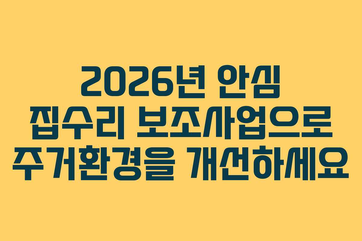 2026년을 맞이하여 주거환경을 개선할 수 있는 기회가 다가왔습니다. 서울시에서는 노후주택 및 불량건축물에 거주하는 시민들을 위해 안심 집수리 보조사업을 시행합니다. 이를 통해 안전하고 쾌적한 주거환경을 제공하고자 하니, 이 기회를 놓치지 마시기 바랍니다.