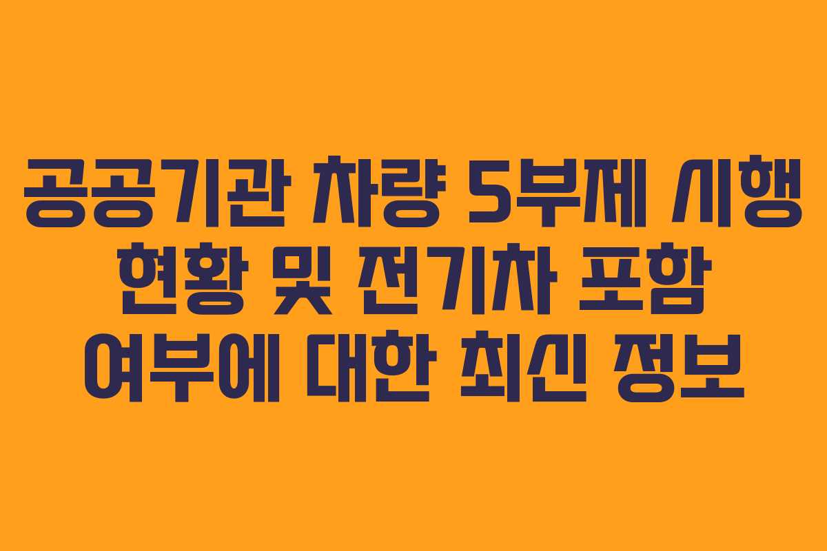2026년 기준으로, 정부는 공공기관의 차량 운행 제한을 강화하기 위해 차량 5부제의 도입을 검토하고 있다. 이 정책은 기존의 2부제를 확장하여 적용할 계획으로, 에너지 절감 및 미세먼지 저감을 목표로 하고 있다. 그러나 현재로서는 시행 여부에 대한 결정이 내려지지 않았으며, 대상 차량 및 예외 기준 역시 구체화되지 않은 상태이다.
