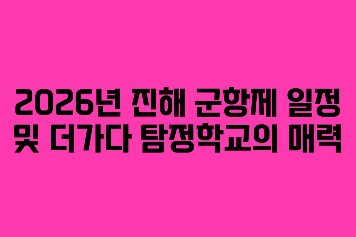 진해의 봄은 벚꽃의 향연으로 시작됩니다. 2026년에도 예외는 아닙니다. 진해 군항제는 매년 수많은 방문객을 맞이하며, 특히 벚꽃이 만개하는 시기에 맞춰 진행됩니다. 이번 글에서는 2026년 군항제 일정과 함께, 더가다 탐정학교에 대한 이야기를 나누고자 합니다. 진해 구도심을 탐방하며 역사와 문화를 체험할 수 있는 기회를 제공하는 이 게임은 방문객들에게 특별한 경험을 선사합니다.