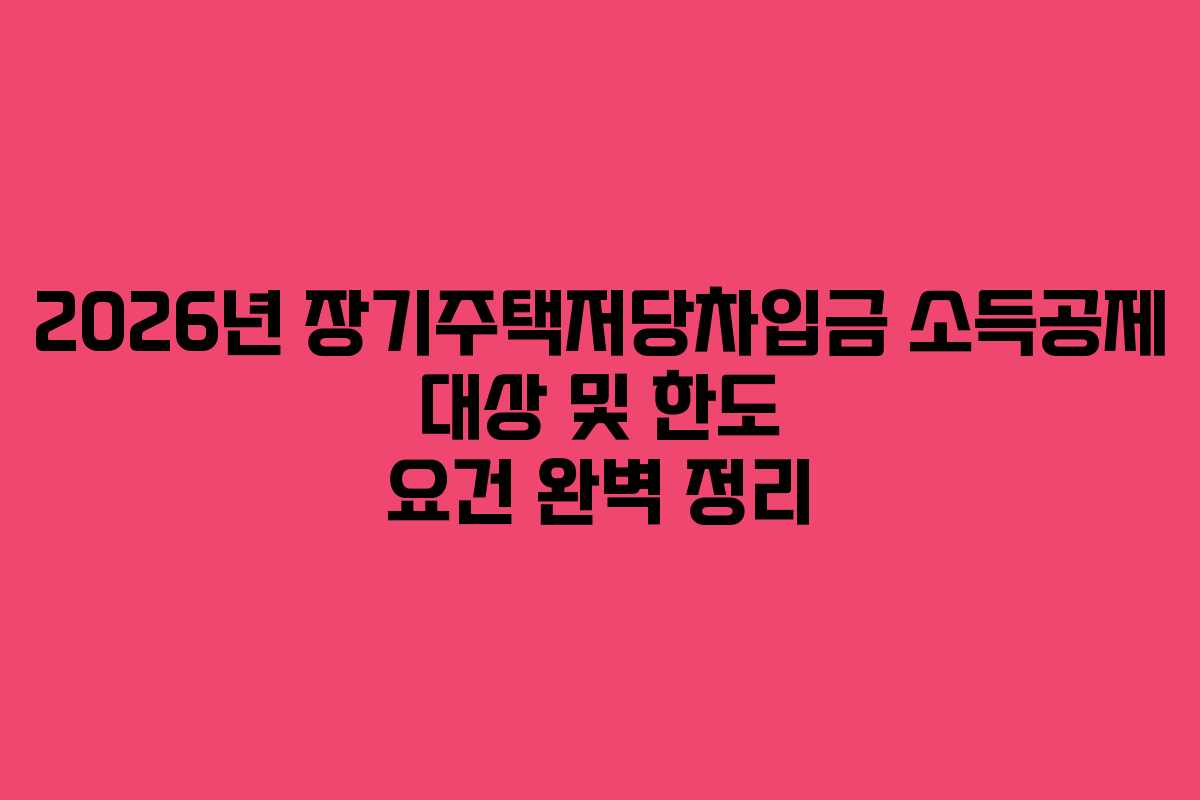 2026년 연말정산을 준비하는 납세자에게 장기주택저당차입금 소득공제의 요건과 혜택을 상세히 안내합니다. 1주택 가구의 주거비 부담을 줄여주는 이 제도의 대상자 기준, 주택 공시가격 요건, 상환 기간별 공제 한도를 정확히 확인하여 실질적인 소득공제 혜택을 극대화하시기 바랍니다.