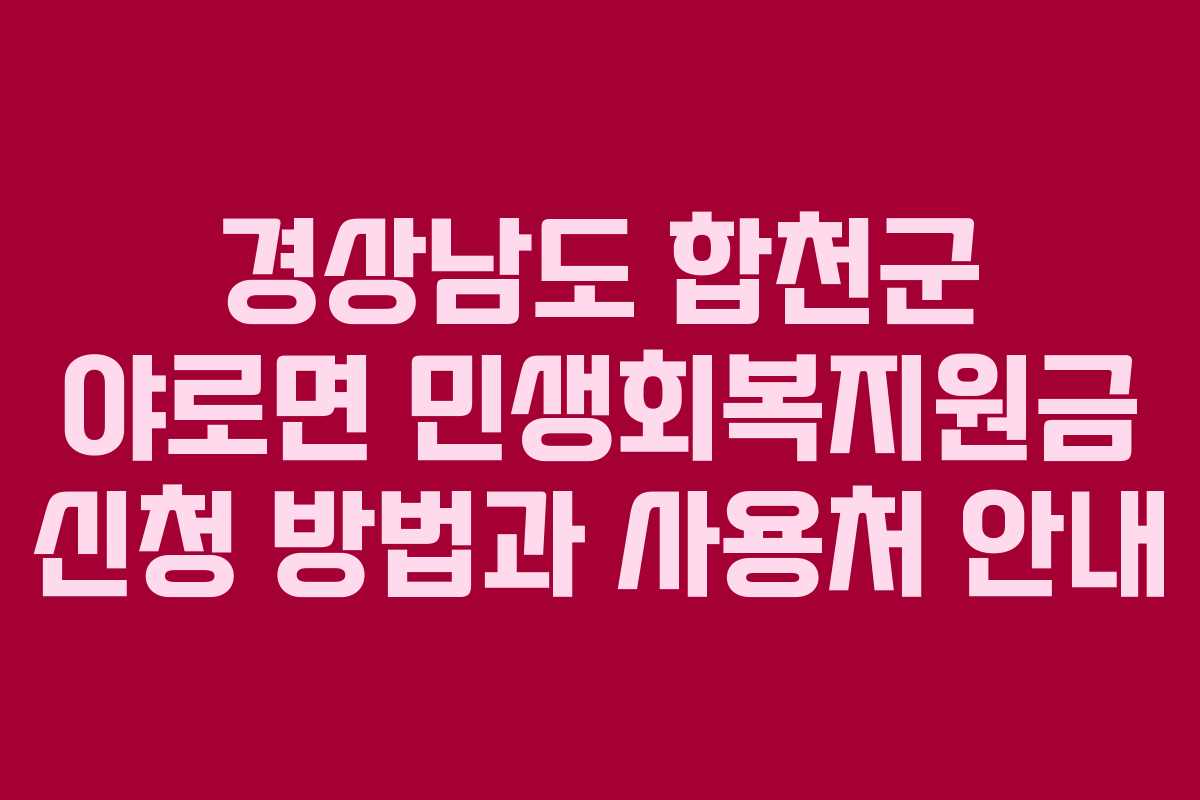 민생회복지원금은 합천군 야로면의 주민들을 대상으로 하며, 소득 기준에 따라 지급 대상자가 선정됩니다. 해당 기준은 공식 홈페이지에서 확인할 수 있습니다.