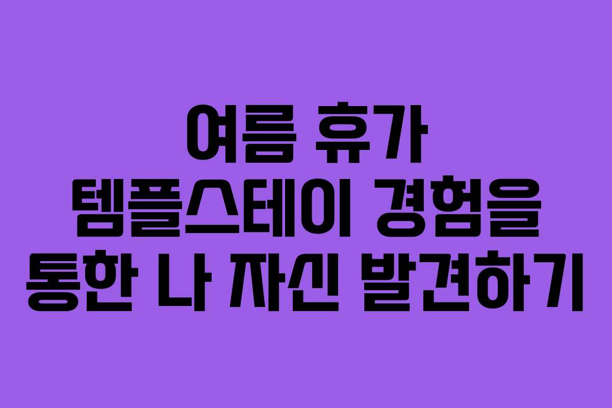 여름 휴가 템플스테이: 소중한 경험의 나눔