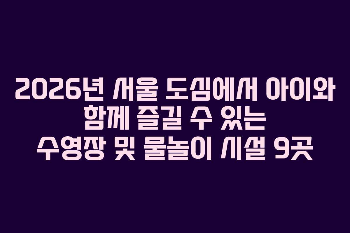 2026년 서울 도심에서 아이와 함께 즐길 수 있는 수영장 및 물놀이 시설 9곳
