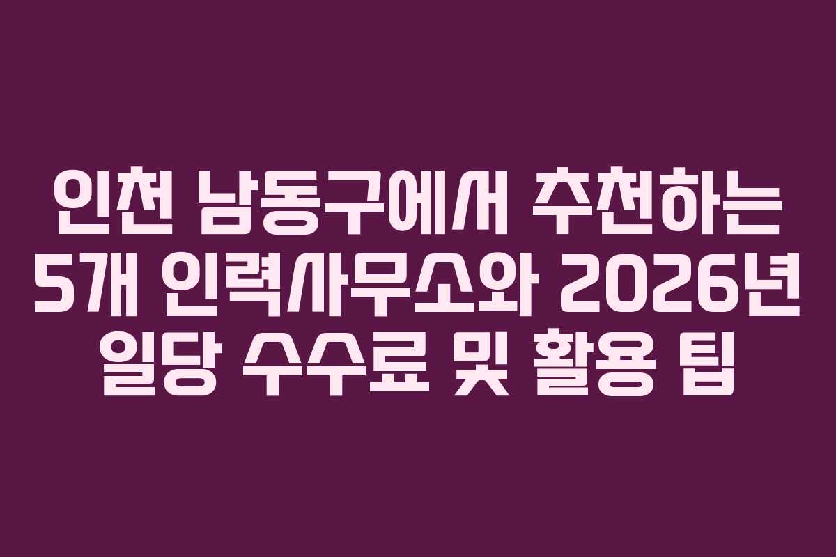 인천 남동구에서 신뢰할 수 있는 인력사무소를 찾고 있다면, 적합한 정보를 통해 보다 나은 선택을 할 수 있습니다. 이 글에서는 인천 남동구에서 추천하는 인력사무소 5곳과 2026년 기준 일당 수수료, 그리고 전문가 팁을 함께 소개합니다.