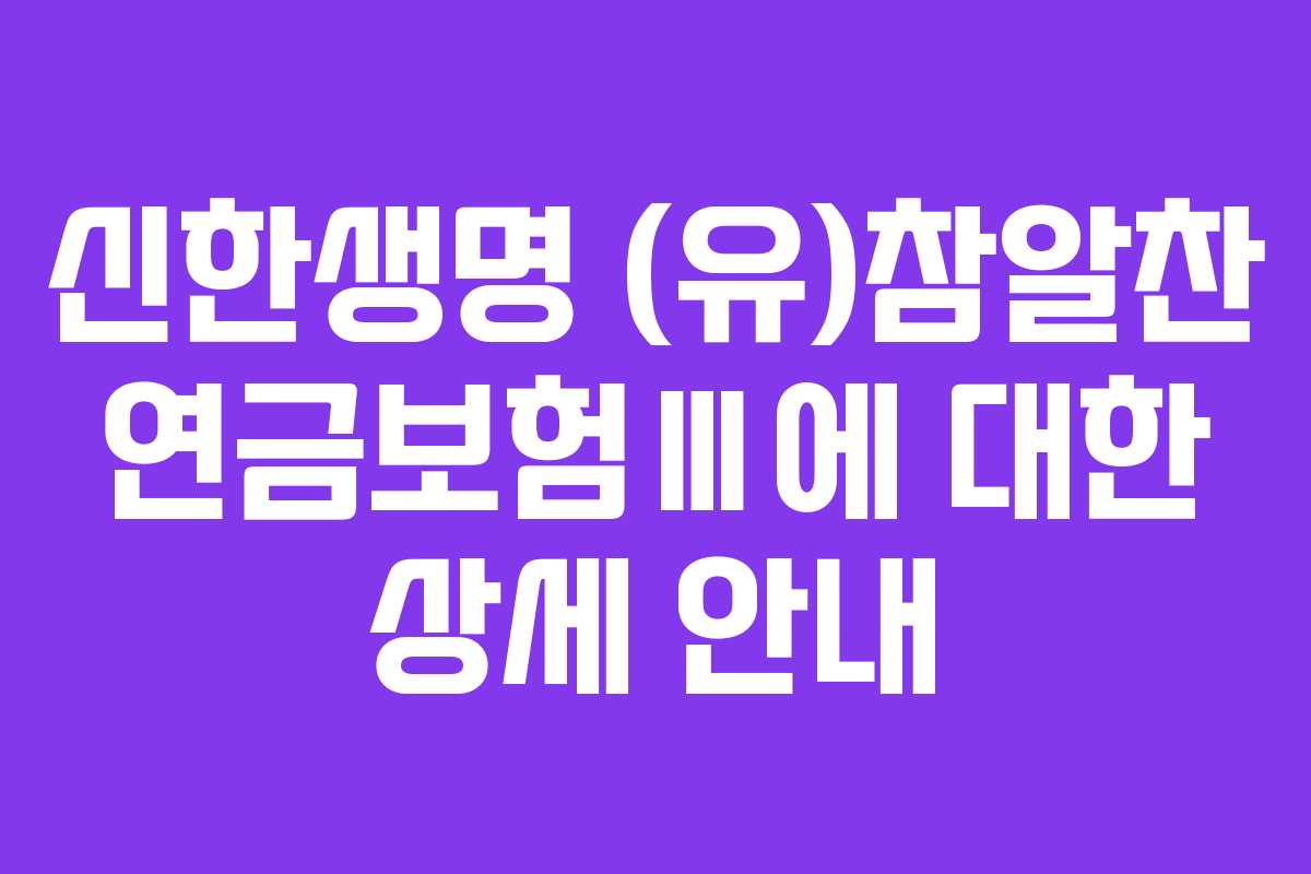 신한생명에서 제공하는 (유)참알찬 연금보험Ⅲ는 안정적인 노후 자금 마련을 위한 상품으로, 다양한 혜택과 유연한 자금 운용 방식을 특징으로 한다. 이 보험은 특히 55세 이후부터 연금을 개시할 수 있는 종신형 및 확정형 옵션을 제공하여 소비자에게 선택의 폭을 넓힌다. 본 문서에서는 2026년 기준으로 이 보험의 주요 특징과 혜택을 자세히 살펴보겠다.
