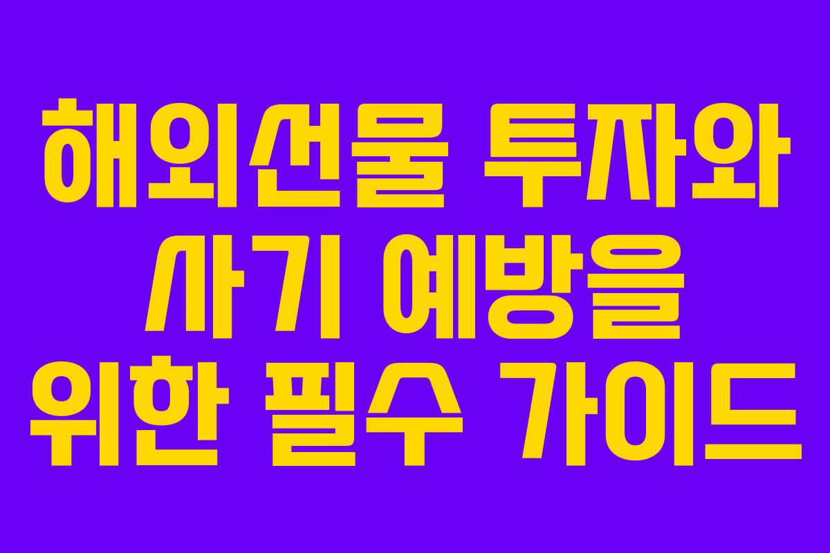 해외선물 투자는 많은 투자자들에게 매력적인 선택이지만, 사기와 위험도 함께 존재하는 분야입니다. 본 가이드는 2026년 기준으로 해외선물 시장의 현황과 안전한 투자 방법, 사기 예방을 위한 유의 사항 등을 다룰 것입니다. 신뢰할 수 있는 업체를 선택하고, 올바른 투자 전략을 통해 안전하게 수익을 추구하는 방법에 대해 알아보겠습니다.