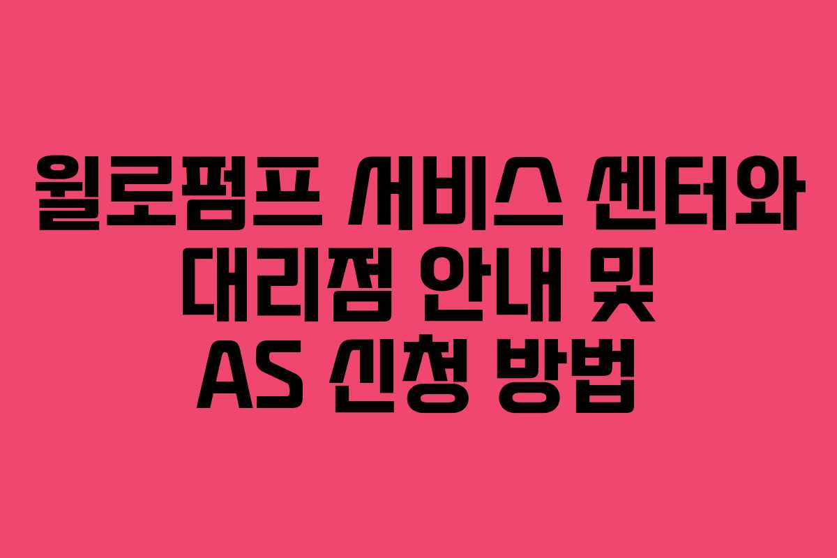 윌로펌프 서비스 센터와 대리점 안내 및 AS 신청 방법
