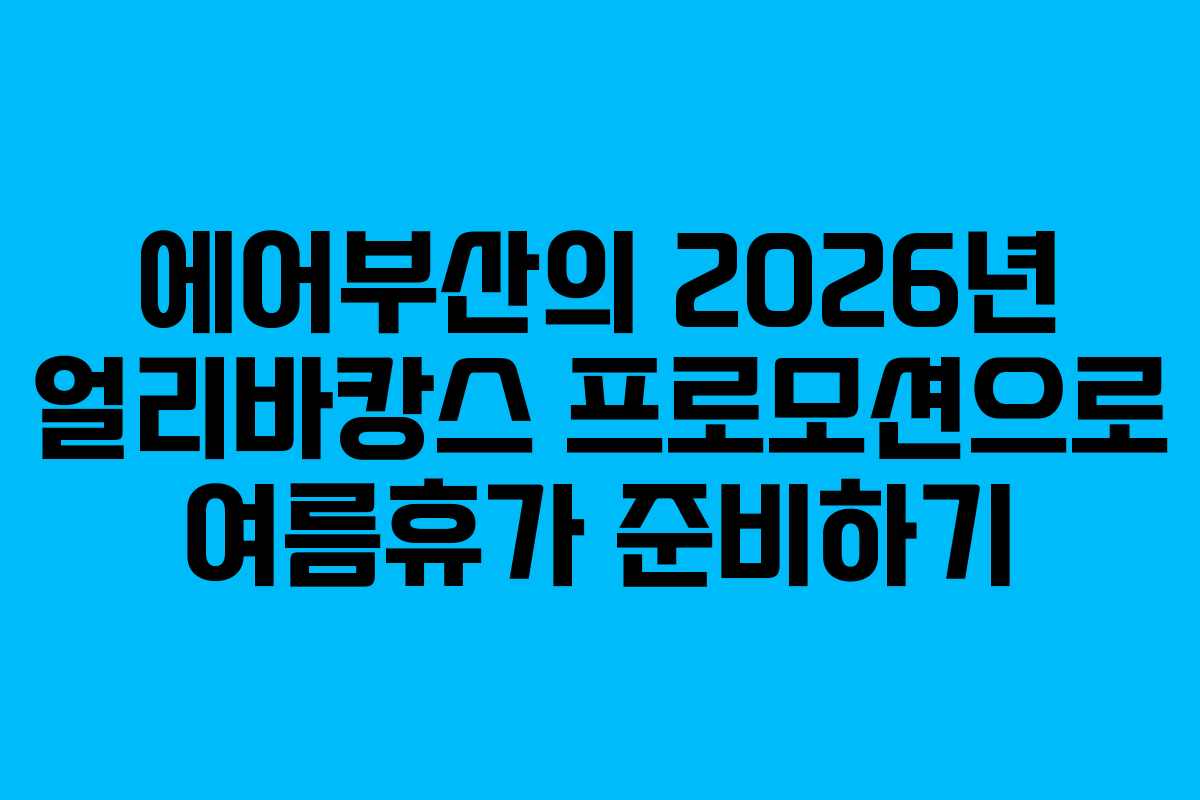 에어부산의 ‘얼리바캉스’ 프로모션은 2026년 여름휴가를 준비하는 이들에게 최적의 기회를 제공한다. 저렴한 항공료와 다양한 혜택을 놓치지 말고, 에어부산 홈페이지에서 자세한 정보를 확인하고 꿈꾸던 여행지로 향하는 항공권을 예약해보자.
