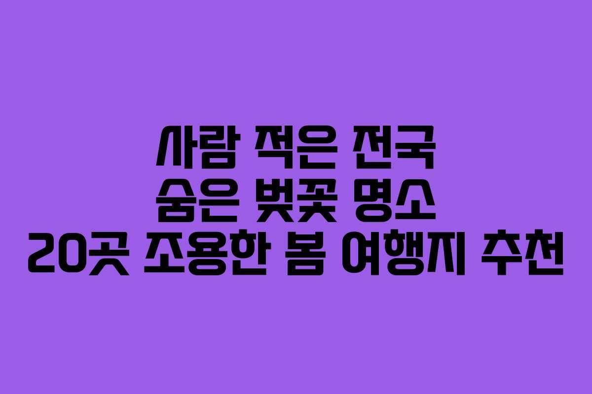 벚꽃 시즌이 다가오면 많은 이들이 유명한 벚꽃 명소를 떠올리지만, 인파 속에서 벚꽃을 감상하기란 쉽지 않습니다. 그래서 이번 봄에는 조용한 곳에서 아름다운 벚꽃을 만끽할 수 있는 숨은 명소를 소개합니다. 이곳들은 상대적으로 사람이 적고, 자연의 아름다움을 온전히 느낄 수 있는 장소들로 구성했습니다. 여유로운 산책과 사진 촬영을 통해 봄의 정취를 즐겨보시기 바랍니다.