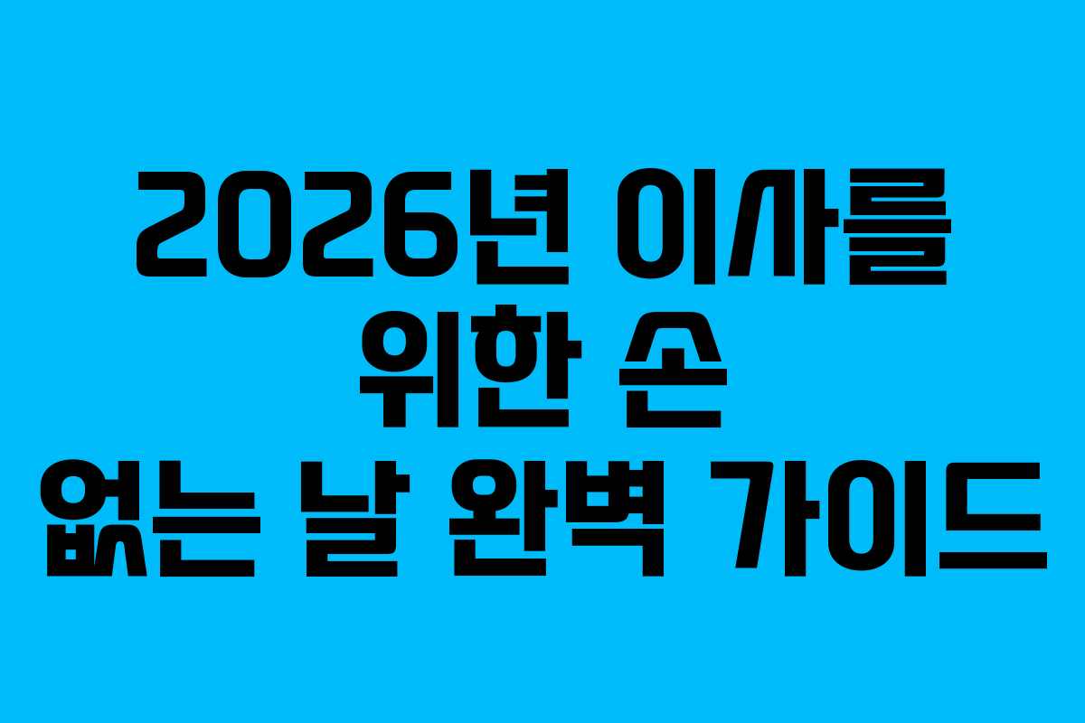 2026년 이사를 위한 손 없는 날 완벽 가이드
