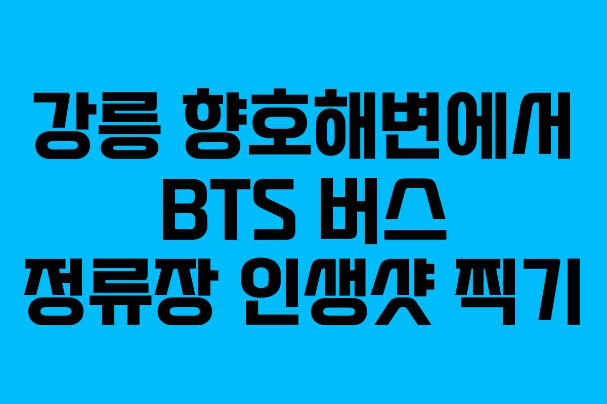 강릉에 도착하면 반드시 향호해변으로 향해야 합니다. 향호해변은 주문진읍에 위치해 있으며, 네비게이션에 “주문진해수욕장”을 입력하면 쉽게 찾을 수 있습니다. 주차는 근처 해수욕장에 하거나 해안가에 주차한 후 약 5분 정도 걸으면 BTS 버스 정류장이 나타납니다. 대중교통을 이용할 경우 시외버스를 타고 주문진 터미널에서 내린 후, 강릉 300번대 버스를 이용해 주문진 해변 정류장에서 하차하면 됩니다.