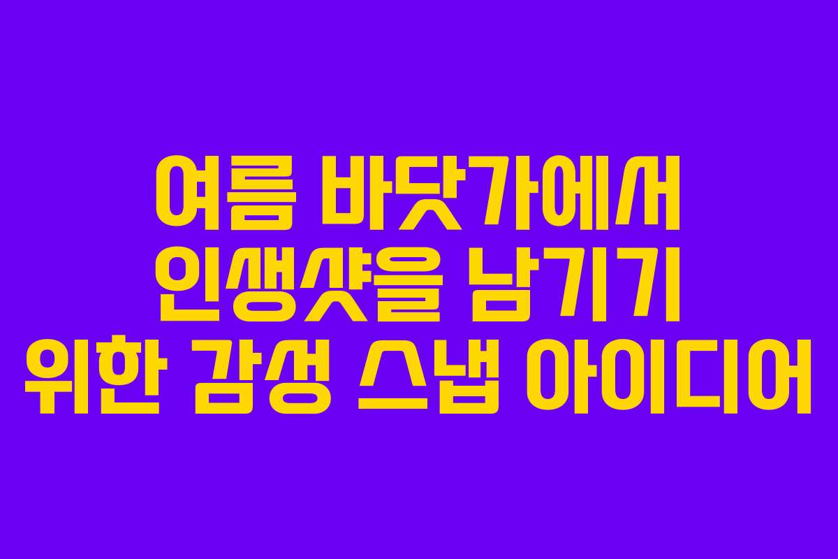 여름 바닷가에서 인생샷을 남기고 싶다면 위의 감성 스냅 아이디어를 적극 활용해보자. 여러분의 촬영 팁이나 추천 명소가 있다면 댓글로 남겨주면 좋겠다. 다음 글에서는 봄 벚꽃 스냅 꿀팁, 여름 해변 스냅 가이드, 가을 노을 공원 사진법을 소개할 예정이다. 기대해도 좋다.