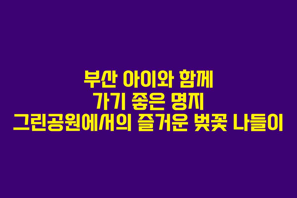 부산의 봄, 특히 벚꽃 시즌은 아이들과 함께 특별한 추억을 만들기 좋은 시점입니다. 이번 2026년 3월, 부산의 벚꽃이 절정에 이르며 많은 가족들이 꽃놀이를 계획하고 있습니다. 그중에서도 안전하고 편리한 장소로 추천할 만한 곳이 바로 명지 그린공원입니다. 이곳은 유모차를 끌고 다니기에도 적합한 평지로, 가족 단위 방문객들에게 안성맞춤입니다.