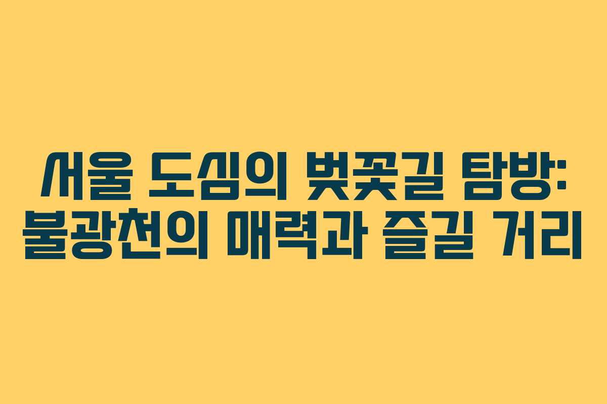서울 도심의 벚꽃길 탐방: 불광천의 매력과 즐길 거리