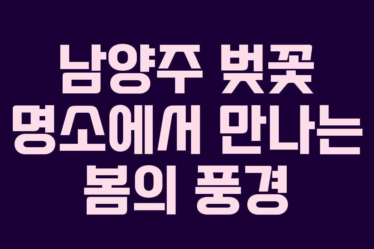 남양주에는 벚꽃이 아름답게 피는 명소가 있습니다. 이곳은 서울 근교에 위치해 있어 접근성이 좋고, 한적한 분위기에서 벚꽃을 즐기기에 안성맞춤인 장소입니다. 벚꽃 시즌에 맞춰 이곳을 소개하고자 하니, 함께 봄의 정취를 느껴보시길 바랍니다.
