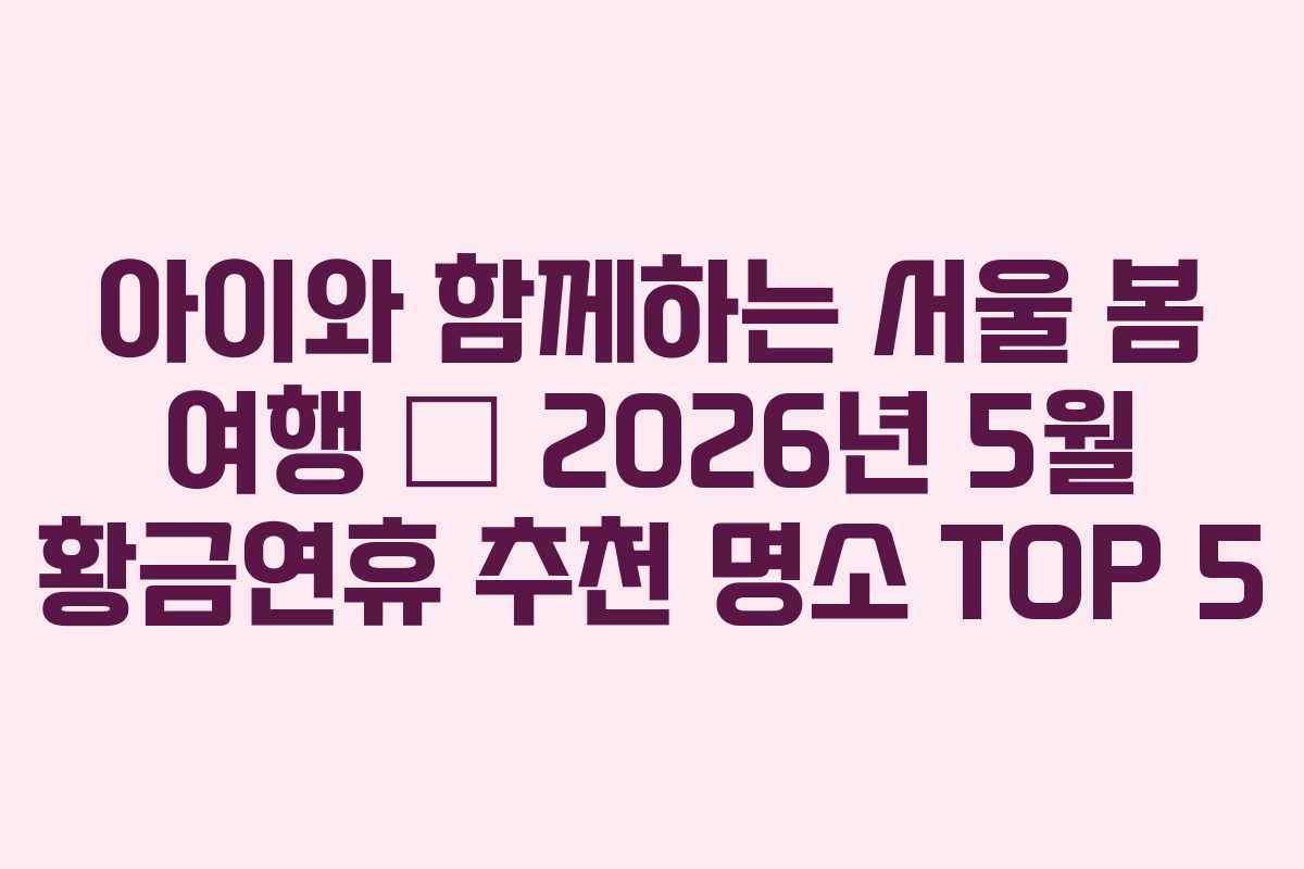 아이와 함께하는 여행은 특별한 추억을 만들기 좋은 기회입니다. 2026년 5월의 따뜻한 햇살 아래, 서울은 아이와 함께 즐길 수 있는 다양한 명소로 가득 차 있습니다. 이번 연휴에 가족과 함께할 수 있는 5곳의 추천 여행지를 소개합니다. 각 명소는 아이에게 교육적이면서도 즐거움을 줄 수 있는 곳들입니다.