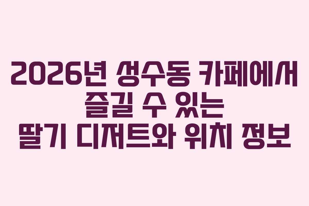 2026년은 많은 이들에게 특별한 순간을 선사할 수 있는 기회가 가득합니다. 성수동은 서울의 트렌디한 명소로, 다양한 카페와 맛집이 즐비해 많은 사람들의 방문을 기다리고 있습니다. 특히 딸기 디저트는 봄철이 되면 더욱 인기를 끌며, 피크닉이나 소풍에 완벽한 선택이 됩니다. 이번 글에서는 성수동에서 딸기 디저트를 제공하는 카페의 위치와 상세 정보를 소개합니다.