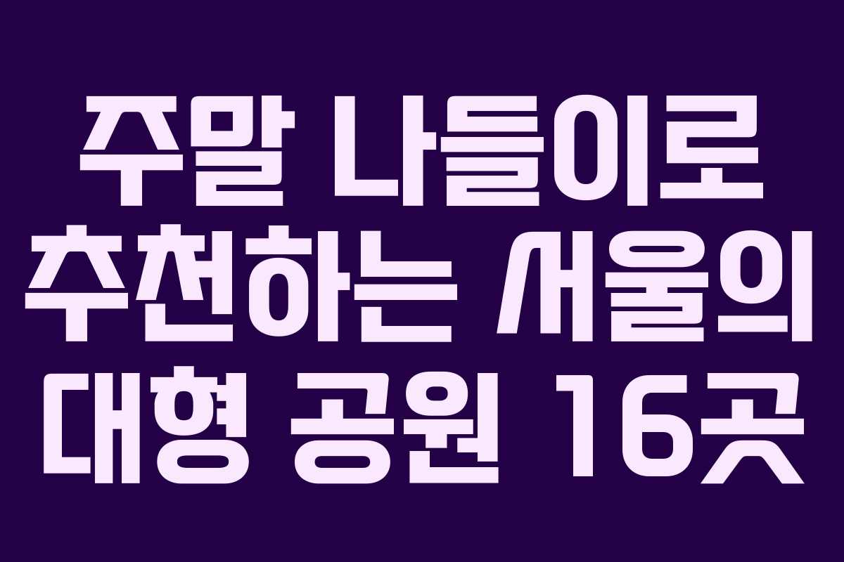 서울에는 이처럼 다양한 대형 공원들이 있어 주말 나들이 계획에 도움이 될 것입니다. 각 공원의 특징을 잘 살펴보고 자신에게 맞는 공원을 선택하여 즐거운 시간을 보내세요.