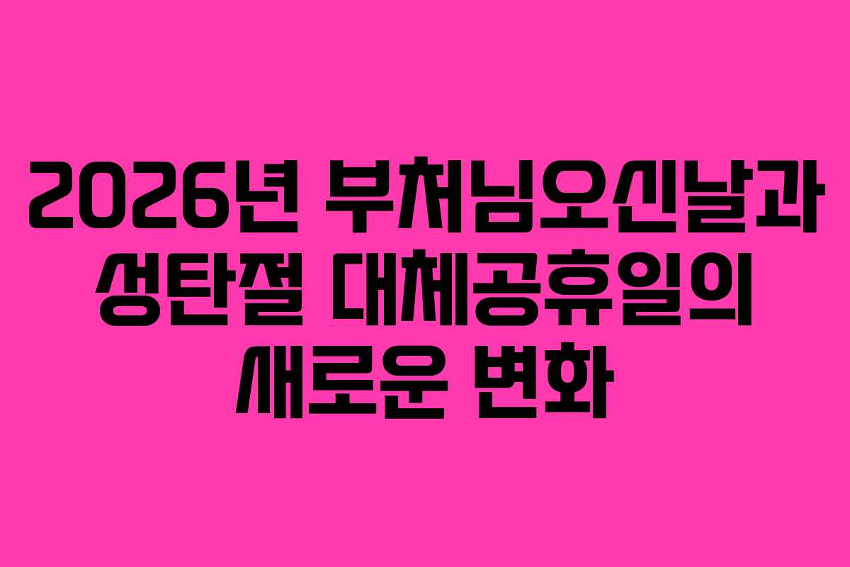 2026년부터 부처님오신날과 성탄절이 대체공휴일로 적용됩니다. 이는 2023년 국무회의에서 결정된 사항으로, 부처님오신날은 음력 4월 8일, 성탄절은 양력 12월 25일이 해당됩니다. 대체공휴일은 이 두 날이 주말과 겹치는 경우에 다른 날로 지정되어 휴식하게 됩니다. 신정, 근로자의 날, 현충일 등 다른 공휴일은 대체공휴일 적용에서 제외됩니다.
