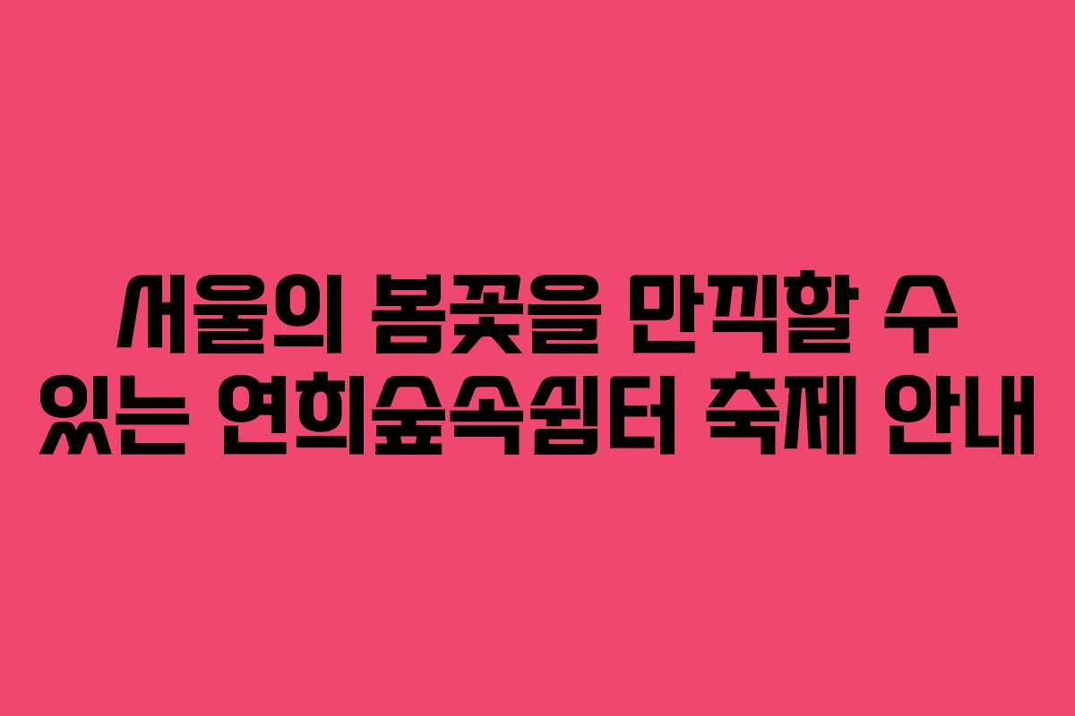 - 2026년 연희숲속쉼터 봄꽃축제 방문을 위한 꿀팁