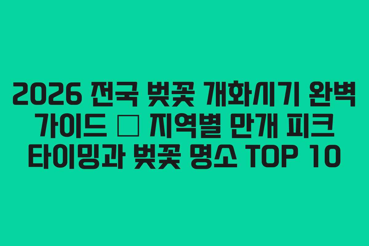 마무리하자면, 2026년 벚꽃 시즌은 지역별 개화 흐름을 고려하여 여행 계획을 세우는 것이 중요합니다. 제주와 남부지방은 3월 하순, 중부지방은 3월 말~4월 초, 수도권과 북부권은 4월 초~중순으로 예상되고 있습니다. 이 정보를 바탕으로 알찬 벚꽃 여행을 준비하시길 바랍니다.