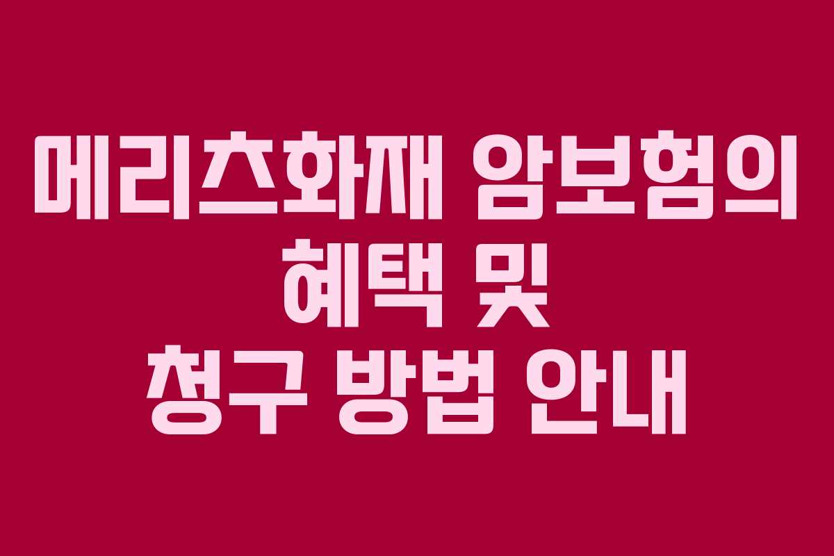 메리츠화재에서 제공하는 암보험은 암 진단 시 경제적 부담을 덜 수 있는 다양한 혜택을 포함하고 있습니다. 본 글에서는 메리츠화재의 암보험의 주요 혜택과 보험금 청구 방법에 대해 자세히 알아보겠습니다.