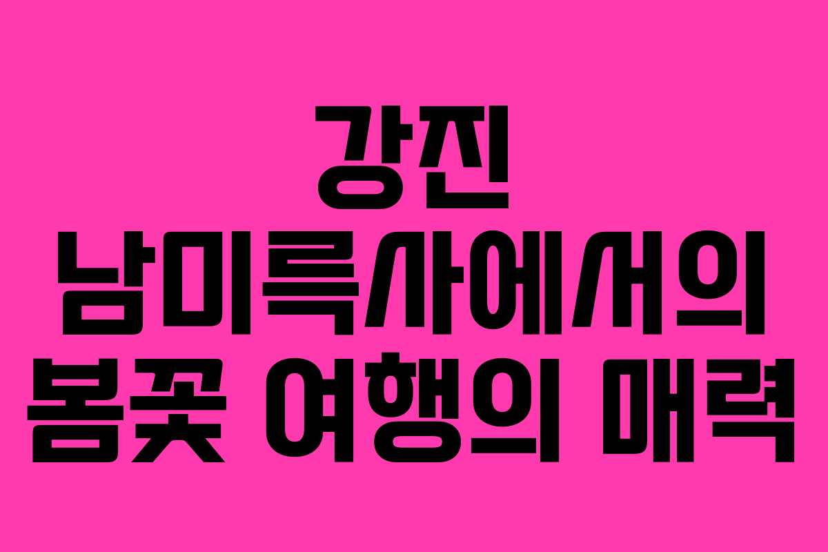 봄이 오면 자연이 깨어나는 시기와 함께 여행의 기회가 찾아옵니다. 특히 벚꽃 시즌이 지나면 다음 여행지를 찾는 것이 고민될 수 있습니다. 그런 고민을 덜어줄 곳이 바로 강진 남미륵사입니다. 이곳은 봄꽃이 만개하는 4월에 특히 아름답고, 많은 여행자들이 찾는 명소로 알려져 있습니다.