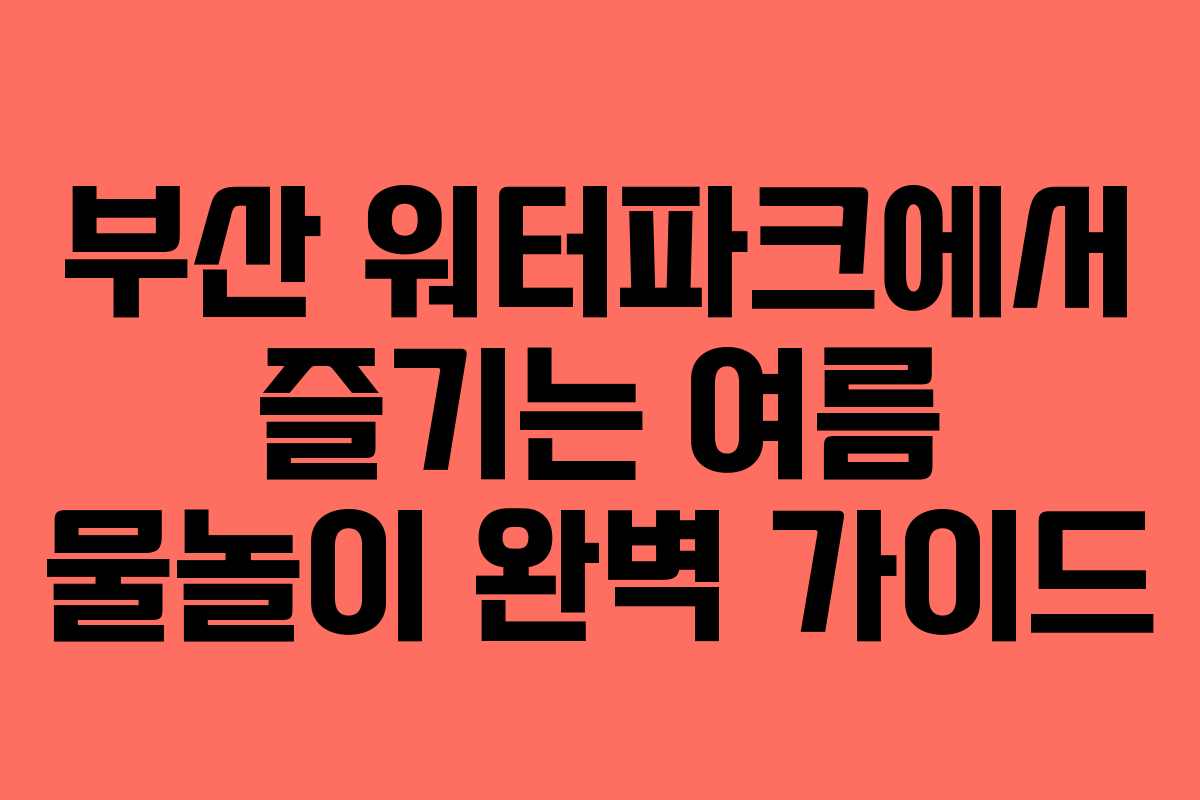 부산의 여름은 워터파크에서의 즐거운 물놀이로 가득 차 있습니다. 다양한 워터파크에서 시원한 물놀이를 즐기고, 안전한 물놀이로 기억에 남는 여름을 보내시길 바랍니다.