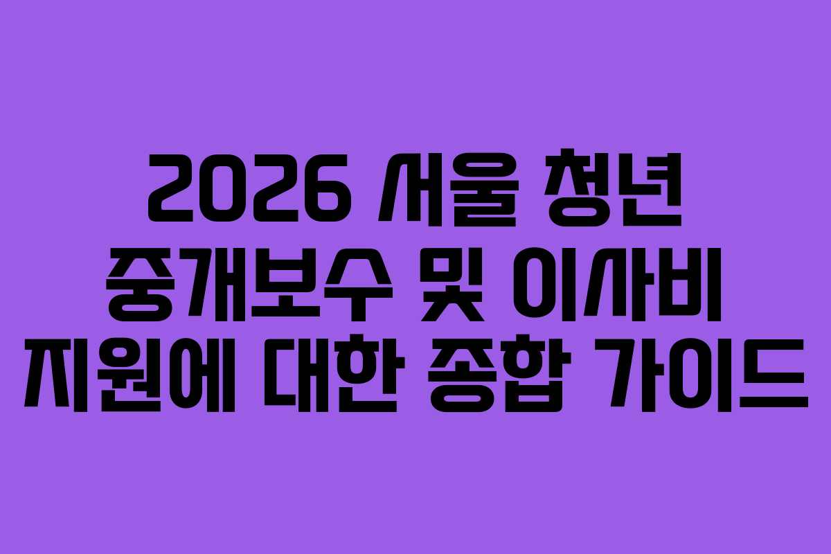 🤔 2026 서울 청년 중개보수 및 이사비 지원에 대한 자주 묻는 질문들